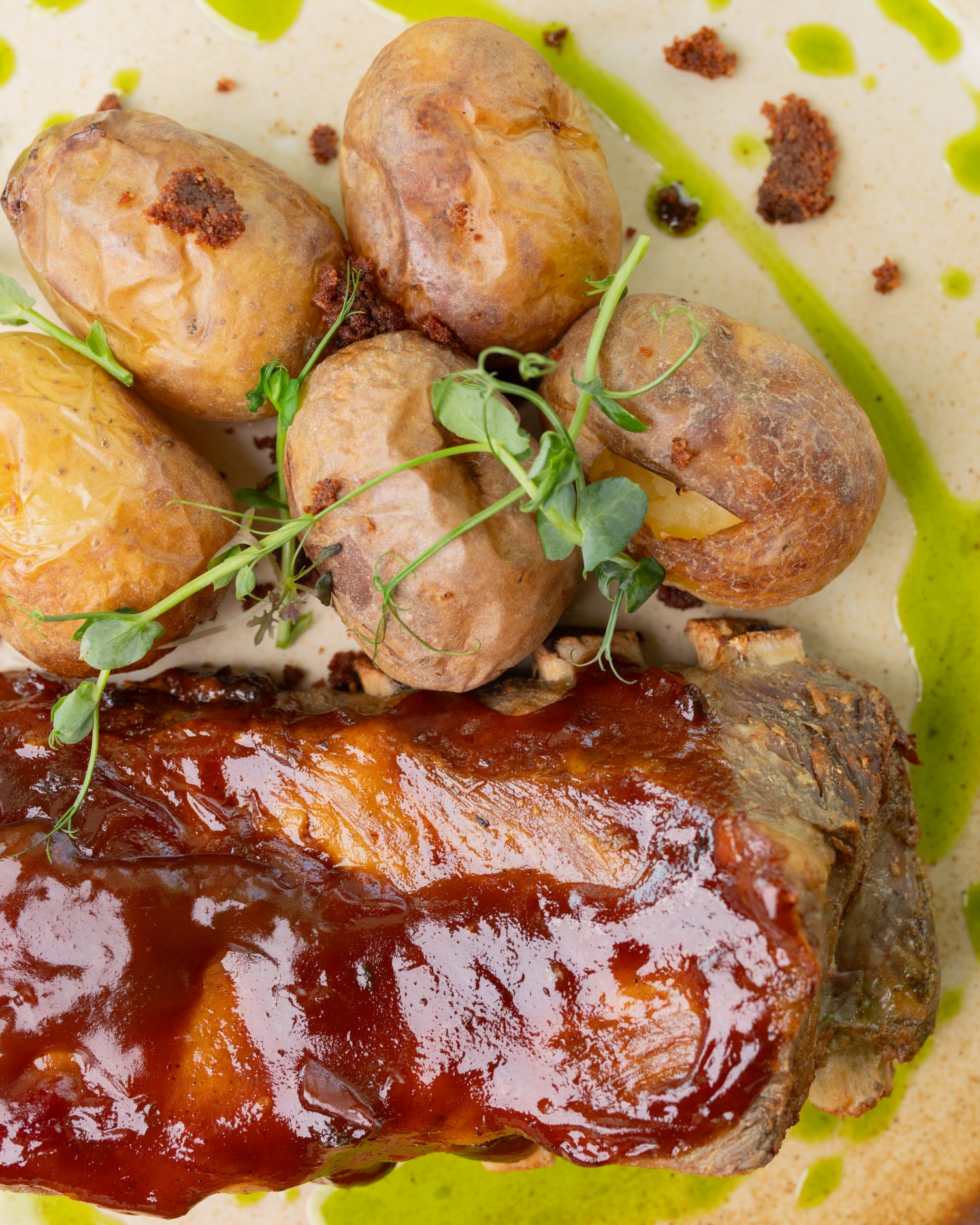 śmietana roślinna / świerk cytrynowy / zioła / oliwa borowikowa / micro liście / świeże pieczywo