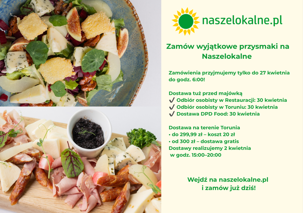 W naszej restauracji wierzymy, że najlepsze smaki rodzą się z natury i pasji ludzi, którzy ją tworzą. Dlatego współpracujemy ze sklepem NaszeLokalne.pl, oferującym produkty od rolników i wytwórców z województwa kujawsko-pomorskiego.